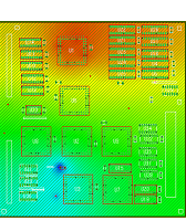 表明發生了巨大的電壓降(IR降)。為避免這種電壓降,可以在紅色區域上放置一個電容器。這樣,紅色區域變為藍色,