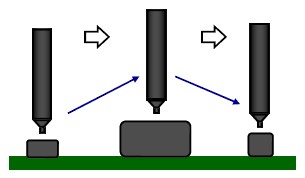 紅外線感應器測量每一個零件高度,在進行測量的同時,讓探棒與零件表面之間能夠保持在相同的工作間距。
