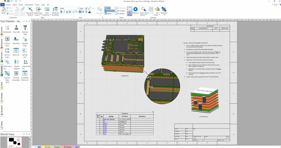 組裝的PCB板視窗中,每個零組件變更的最後組裝設定,可以描繪在配置圖與對應零件清單。組件的安裝狀態可以方便地被檢視,包含印刷電路板最後的組裝建造,此功能將大幅的降低花費的時間,並可確保所有零件都正確安裝。